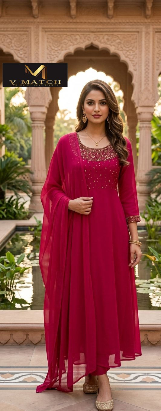 01FEB25. Premium Georgette Aline Inner with Ajrakh Jacket.