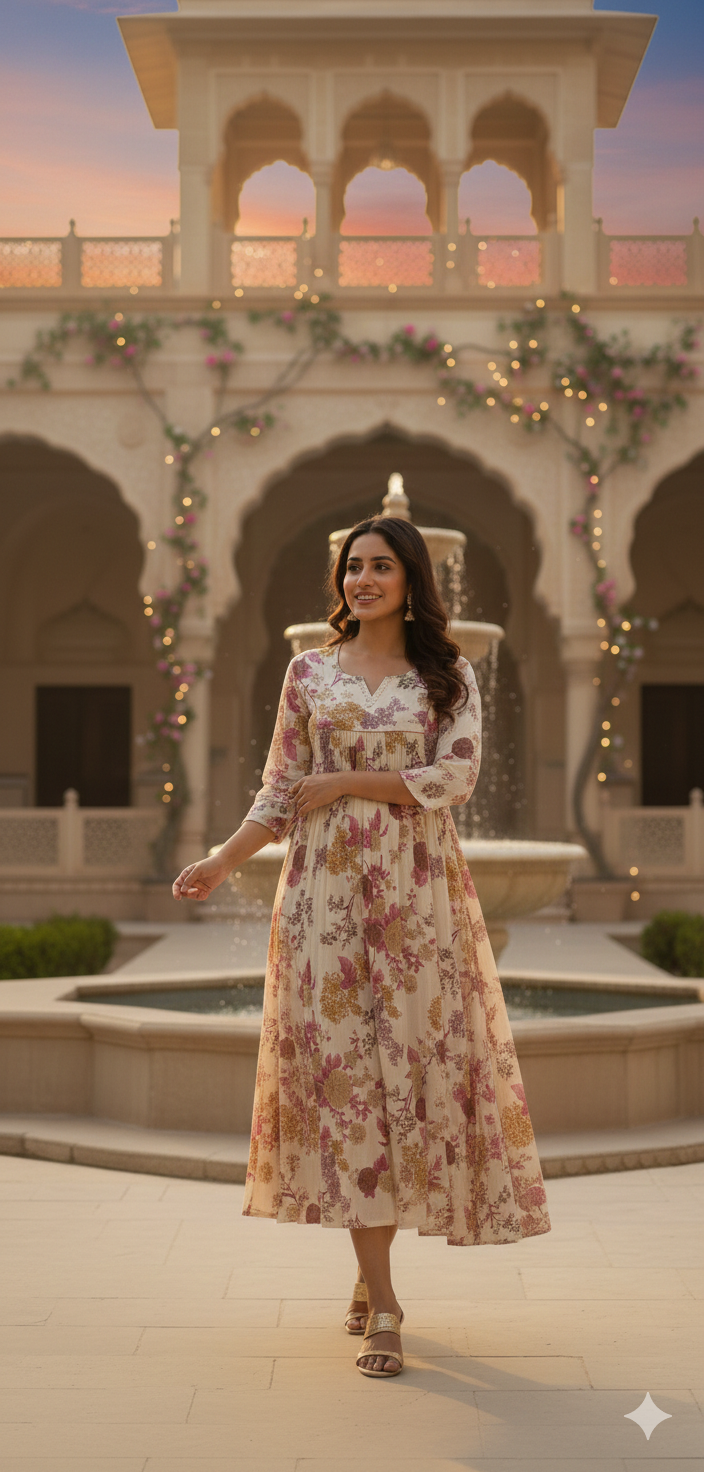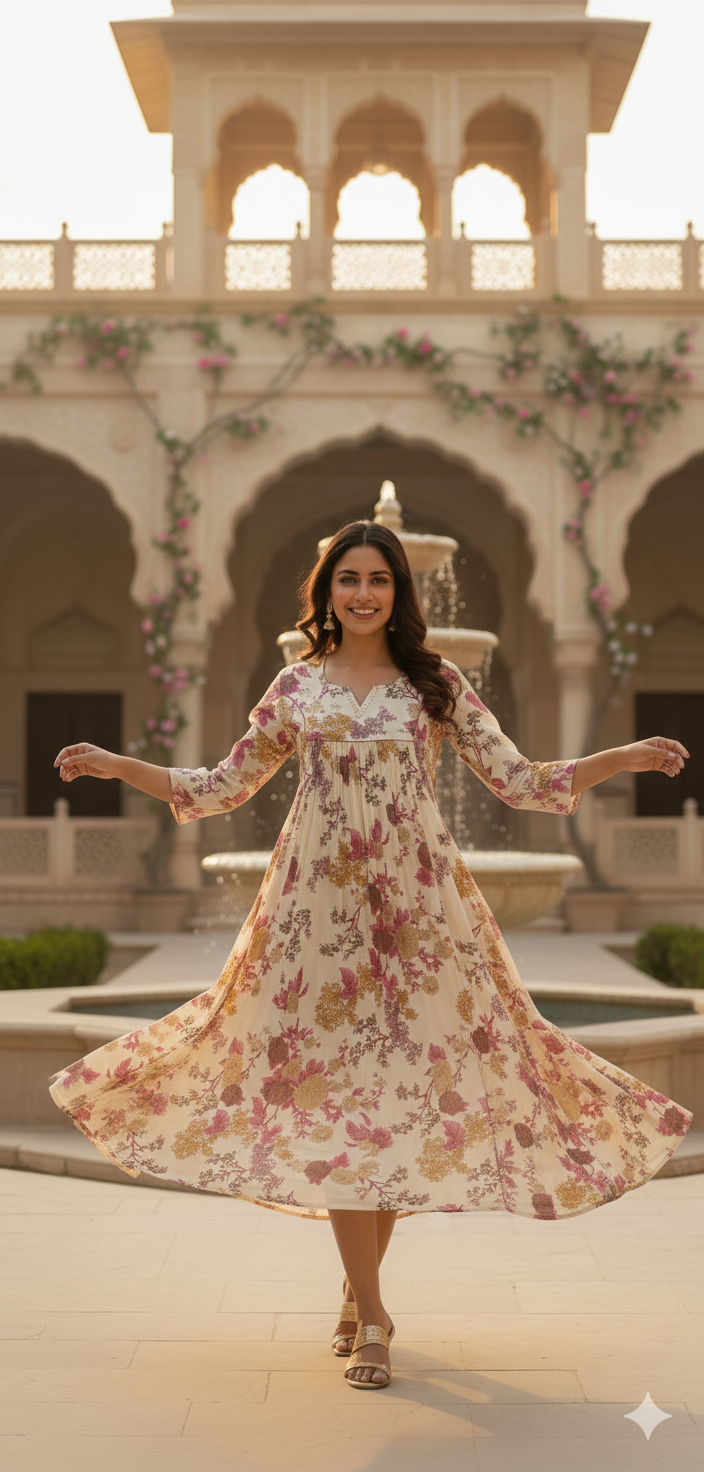 Designed without lining, the fabric remains light and airy—perfect for warm days, festive gatherings, or casual outings where comfort meets elegance. The flattering cut drapes beautifully across all body types, making it a versatile addition to your wardrobe.