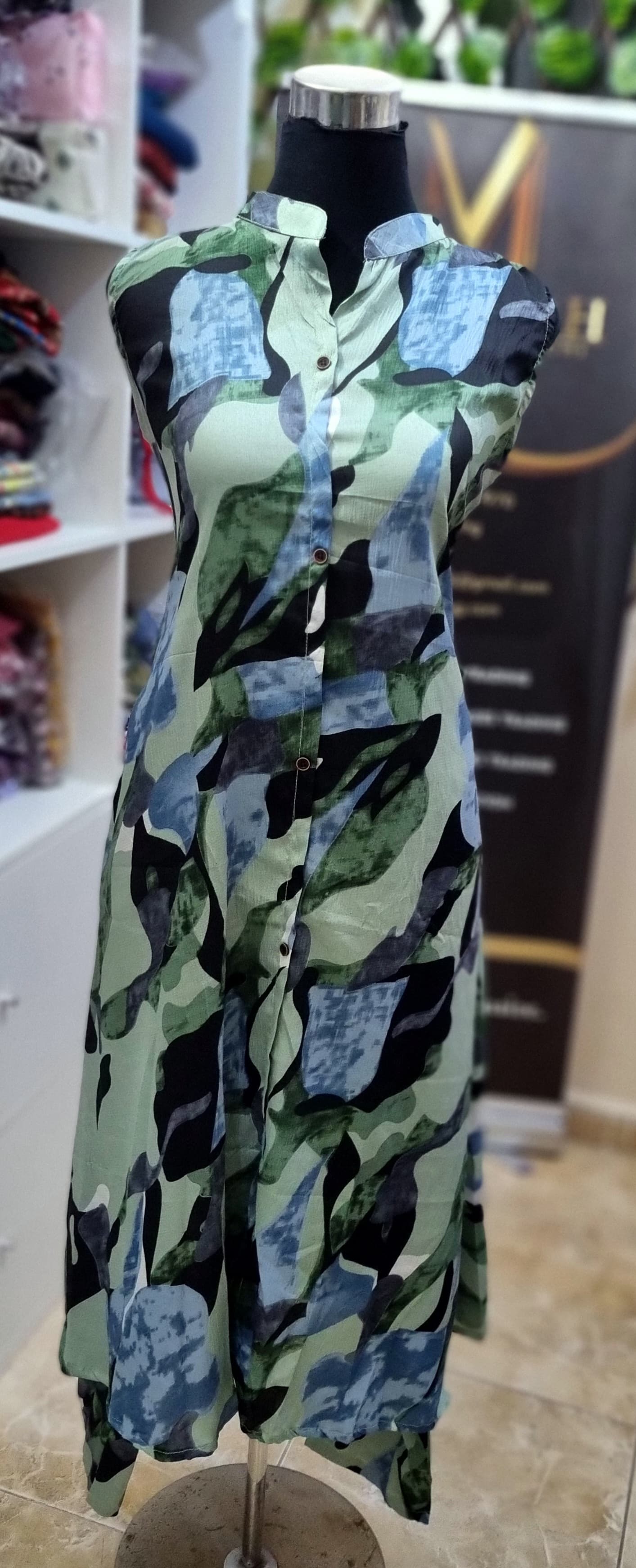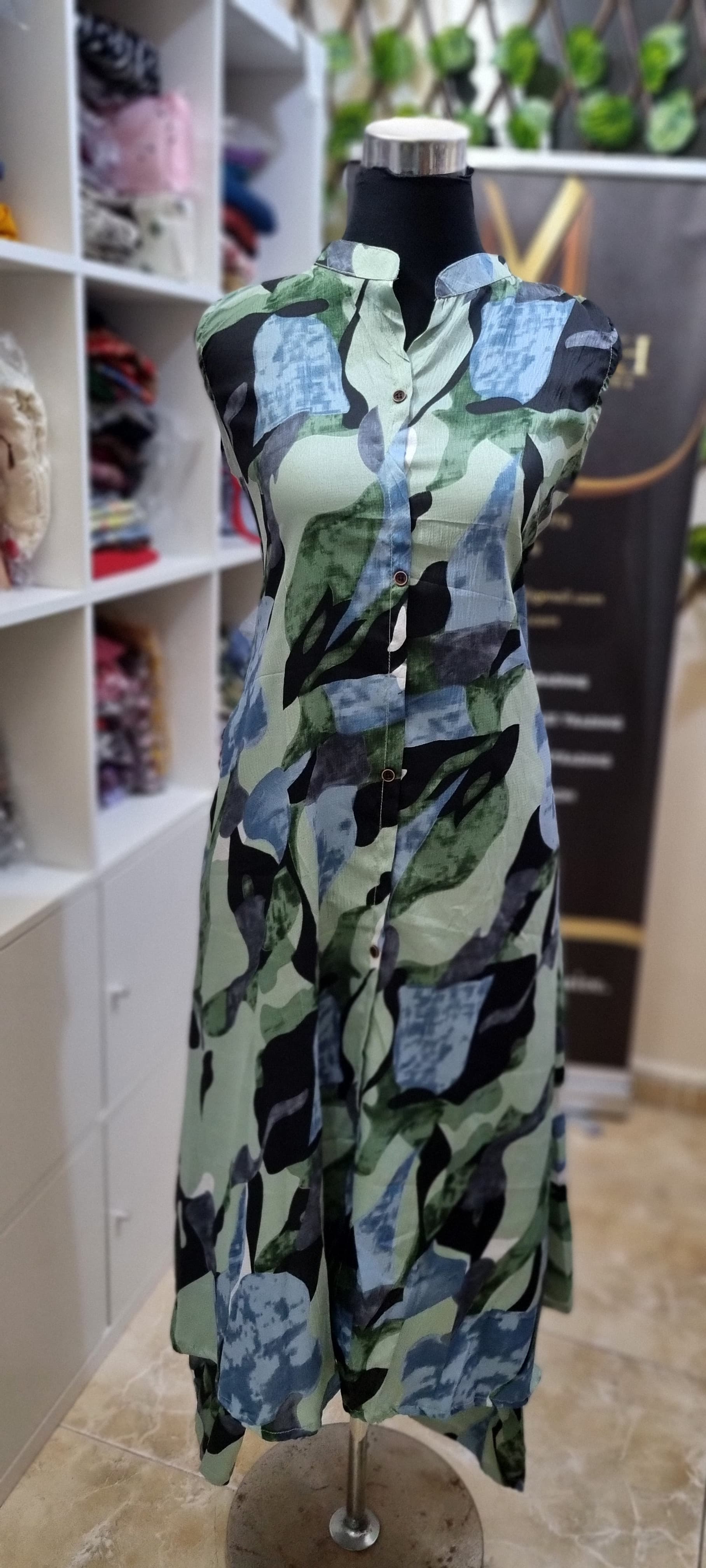 Popcorn Material Co-ord Set – A perfect blend of comfort and contemporary style. Crafted from soft popcorn fabric, this co-ord set features a trendy abstract print and front button-down design. Lightweight, breathable, and stylish, it’s ideal for both casual outings.