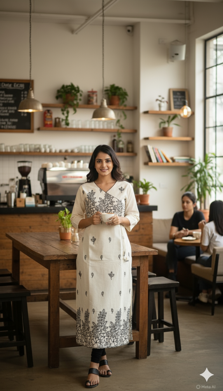 Design: Features a classic Angrakha (cross-over) silhouette with an adjustable side tie-up for a flattering fit.