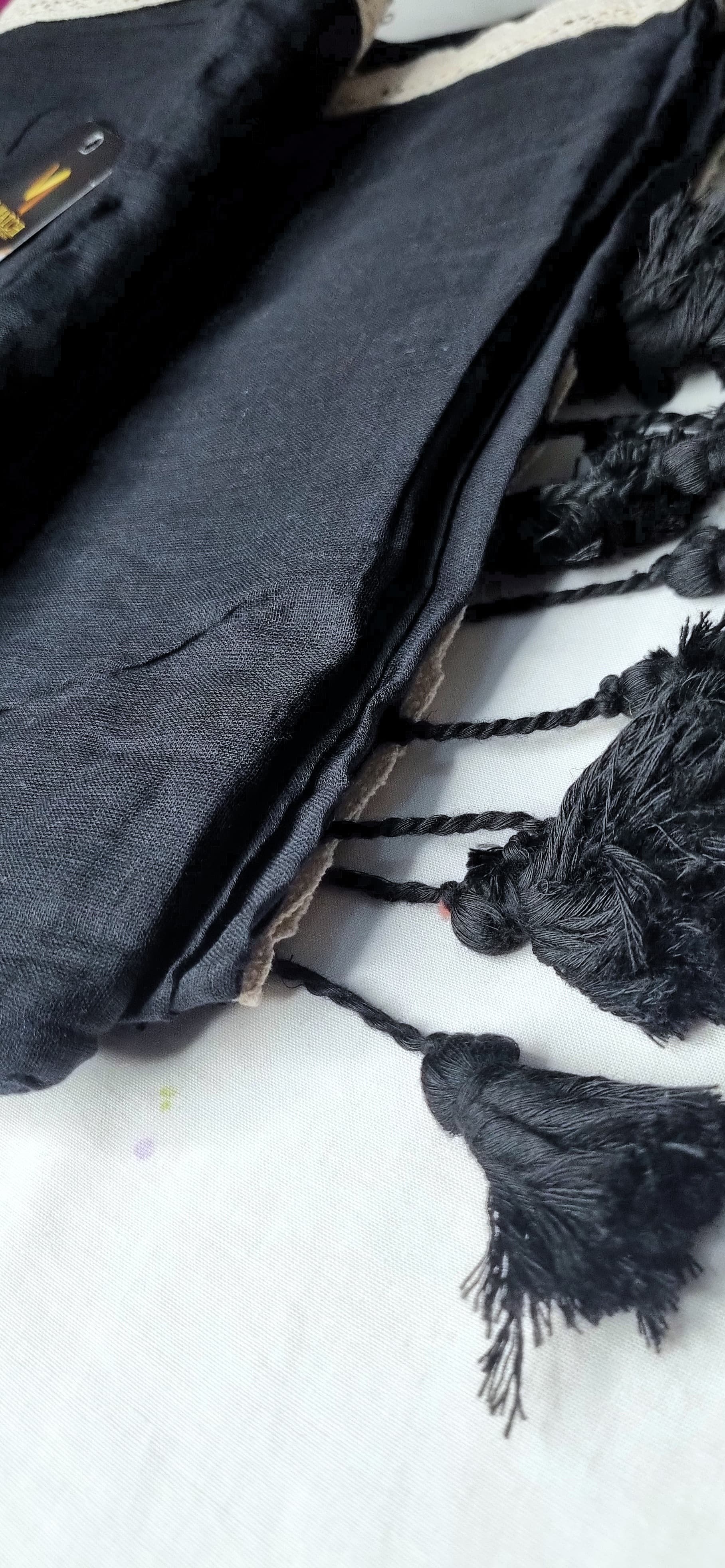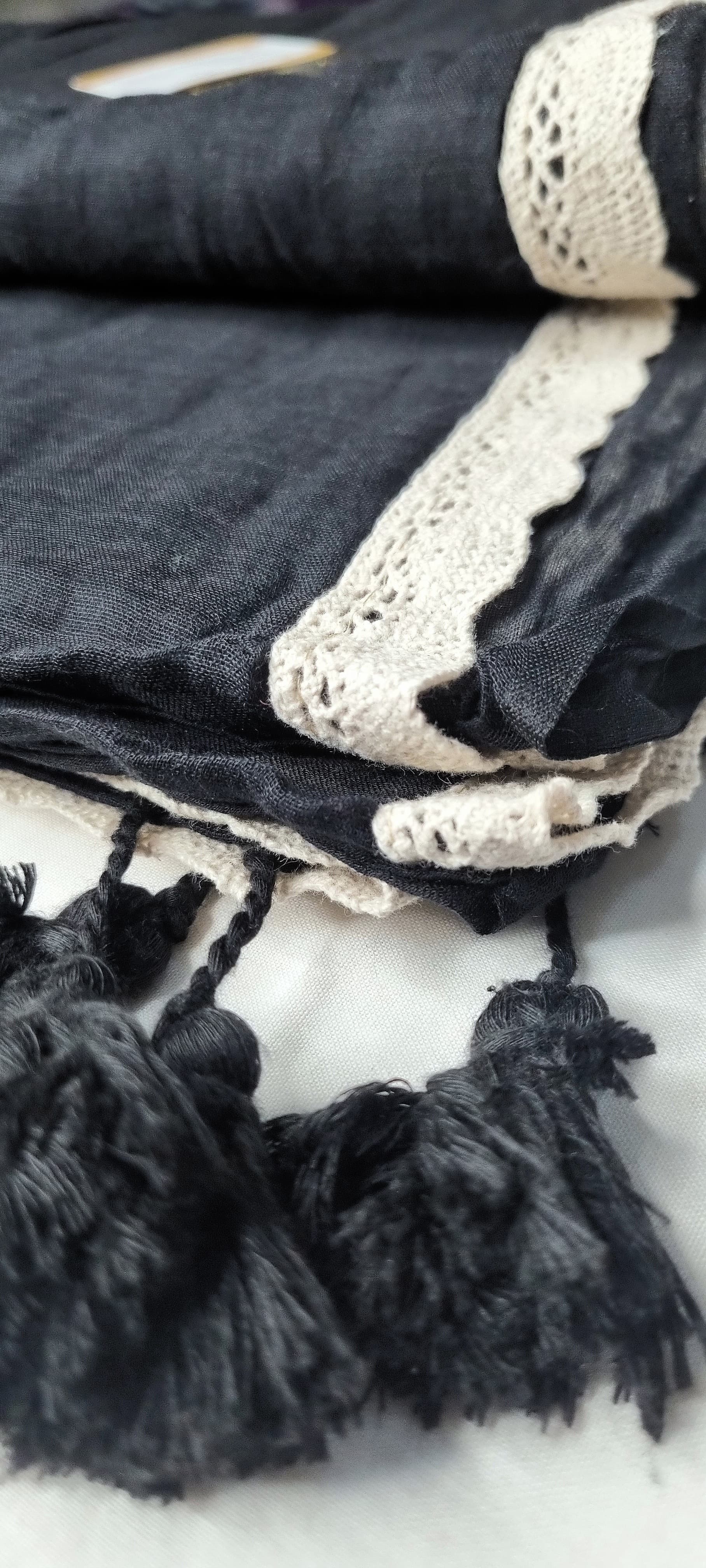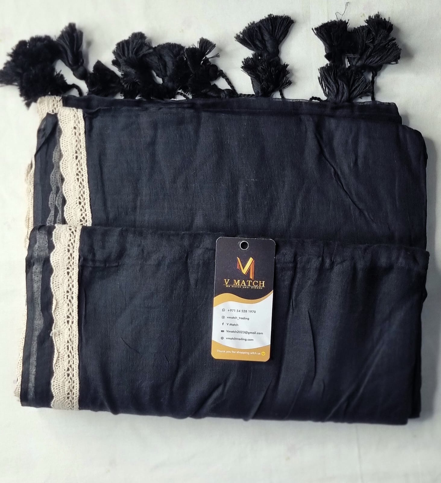 Designed with elegant lace borders and handmade tassels, it blends simplicity with sophistication — perfect for daily wear or special occasions.